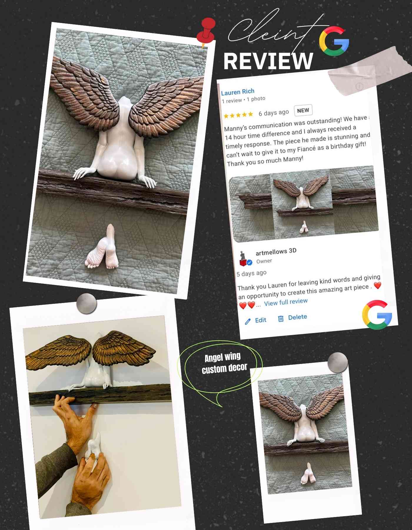 This piece was created as a gift for the client’s girlfriend, inspired by her love for winged angels.